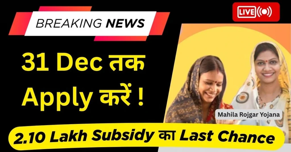 बिहार सरकार की मुख्यमंत्री महिला रोजगार योजना महिलाओं को आत्मनिर्भर बनाने का एक शानदार अवसर प्रदान कर रही है। यह योजना विशेष रूप से ग्रामीण और शहरी महिलाओं के लिए डिजाइन की गई है, जो जीविका स्वयं सहायता समूहों (SHG) से जुड़ी हैं। नवादा जिले में इस योजना के तहत महिलाओं को स्वरोजगार शुरू करने के लिए 2.10 लाख रुपये तक की आर्थिक सहायता मिल सकती है। अगर आप भी बिहार की महिला हैं और अपना बिजनेस शुरू करने का सपना देख रही हैं, तो यह आपके लिए परफेक्ट स्कीम है। योजना का मुख्य उद्देश्य महिलाओं को आर्थिक रूप से मजबूत बनाना है, ताकि वे घर बैठे कमाई कर सकें और परिवार की जिम्मेदारियां निभाते हुए स्वतंत्र जीवन जी सकें। हाल के आंकड़ों के अनुसार, इस योजना से लाखों महिलाएं लाभान्वित हो चुकी हैं, और अब आपकी बारी है। लेकिन ध्यान दें, आवेदन की अंतिम तिथि 31 दिसंबर 2025 है, जो बहुत करीब है। इस आर्टिकल में हम योजना की डिटेल्स, फायदे और अप्लाई करने के तरीके पर चर्चा करेंगे, साथ ही कुछ टिप्स भी देंगे ताकि आपका आवेदन सक्सेसफुल हो।